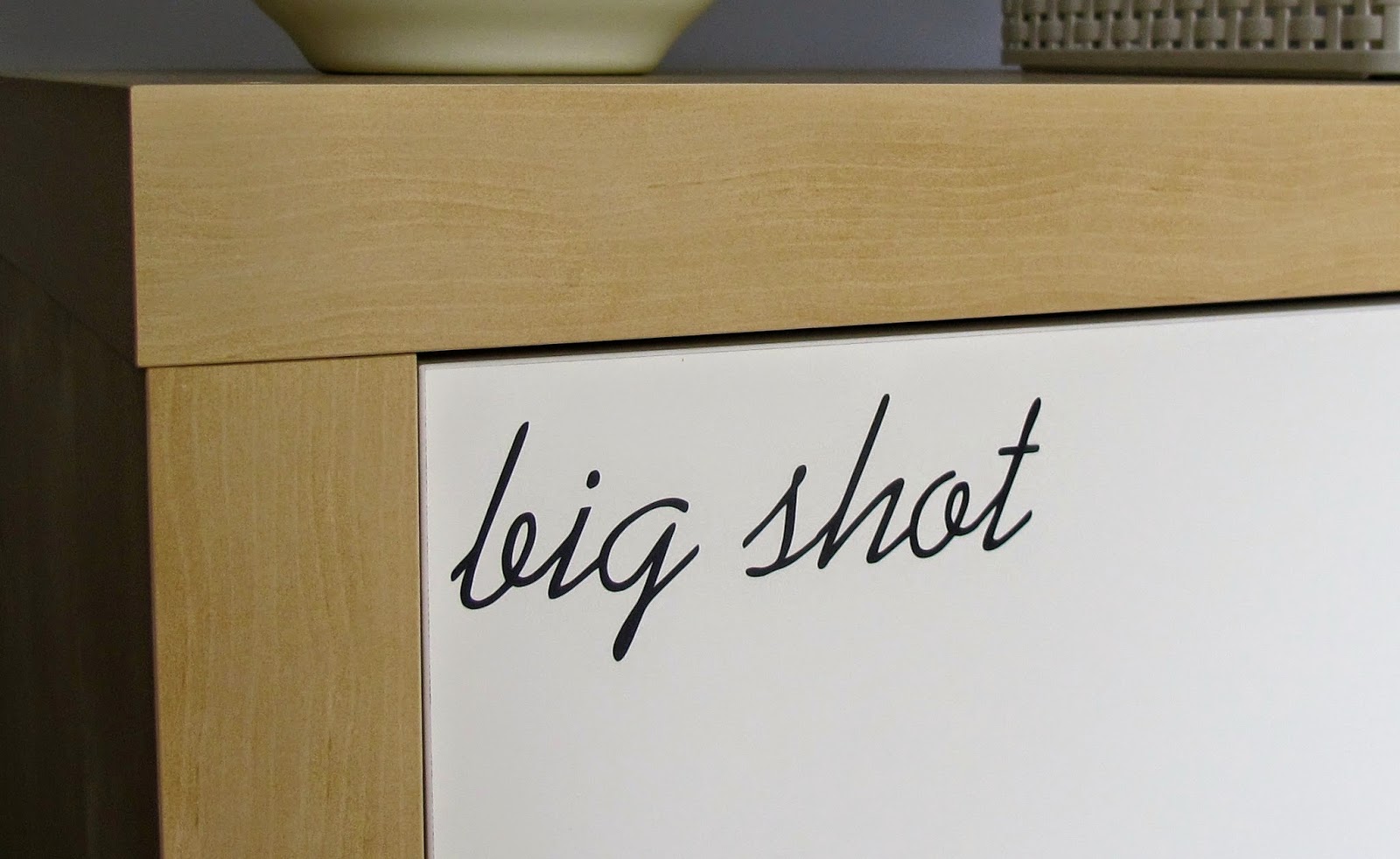 Vinyl decals from Ikea on the back of the Expedit which is acting as a room divider
